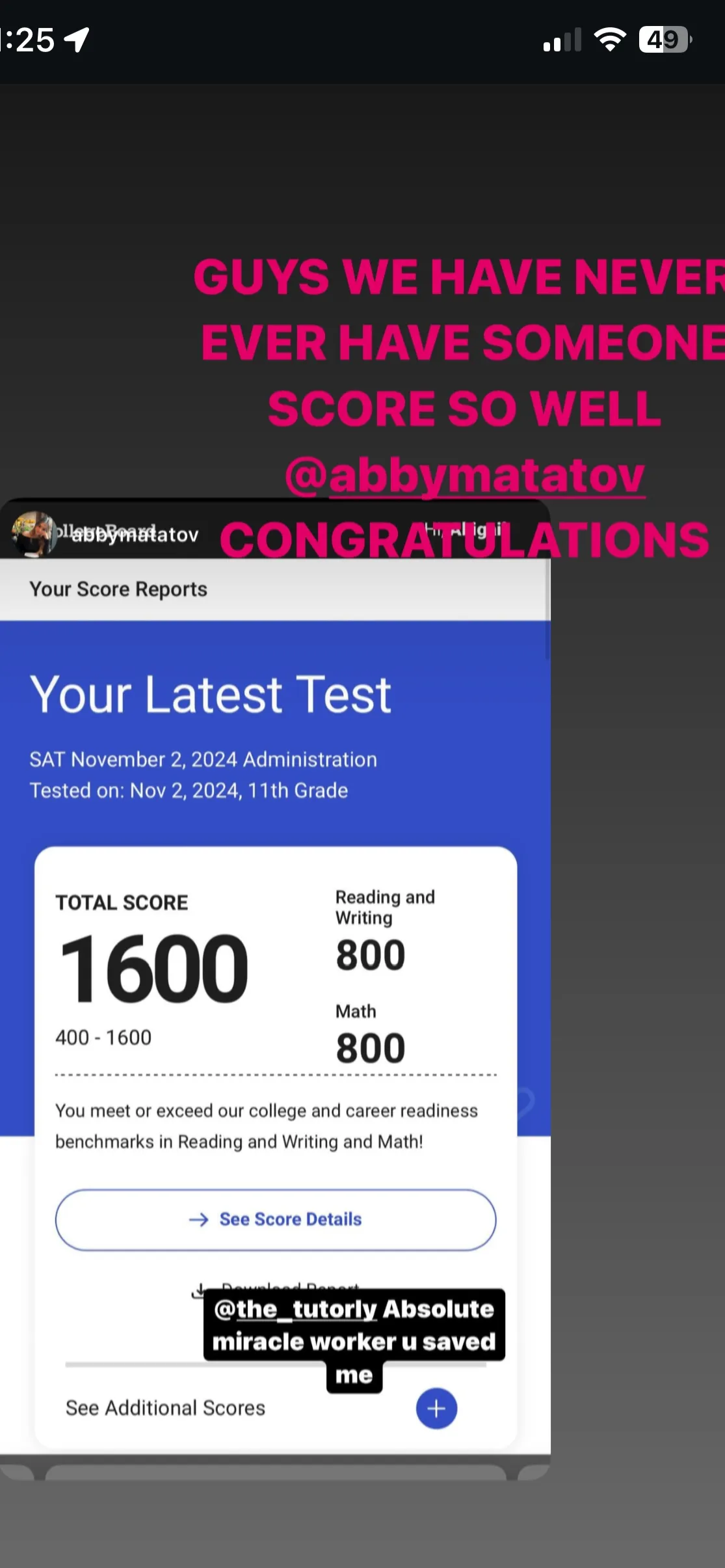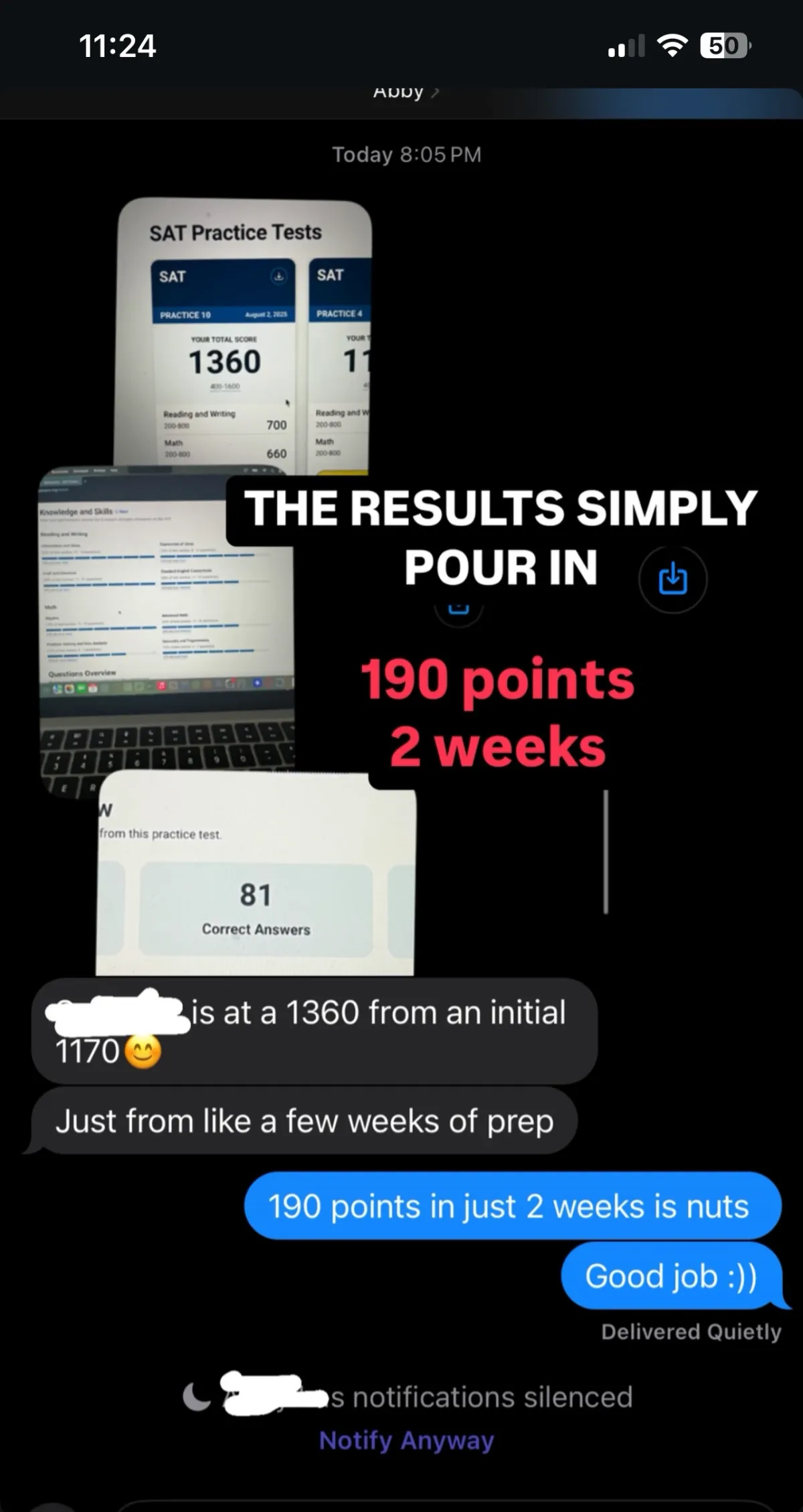 Abigail started at a 1180 and got a 1600 after 4 months of work with our program.