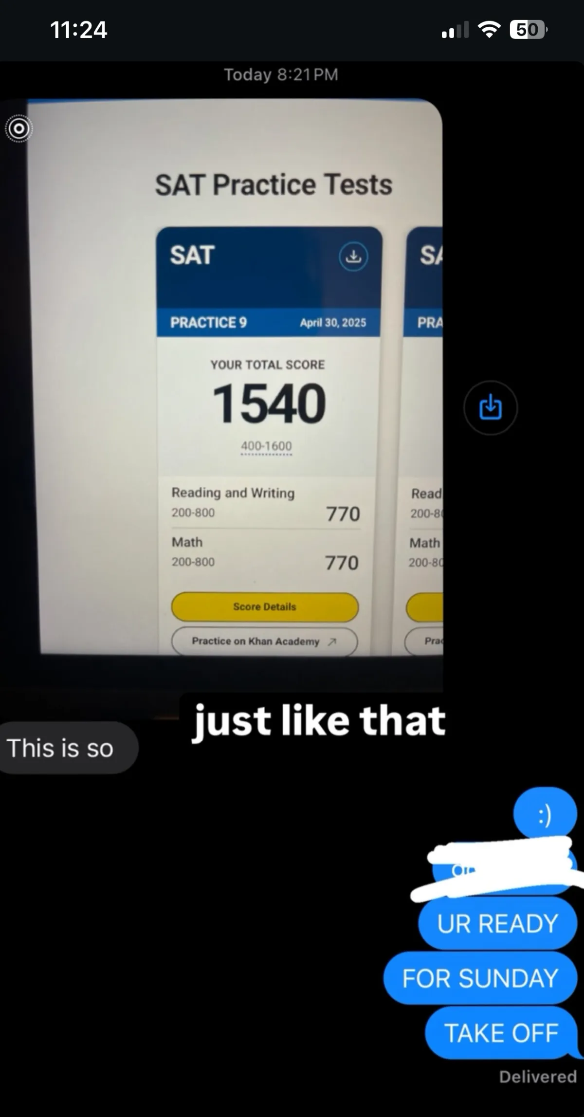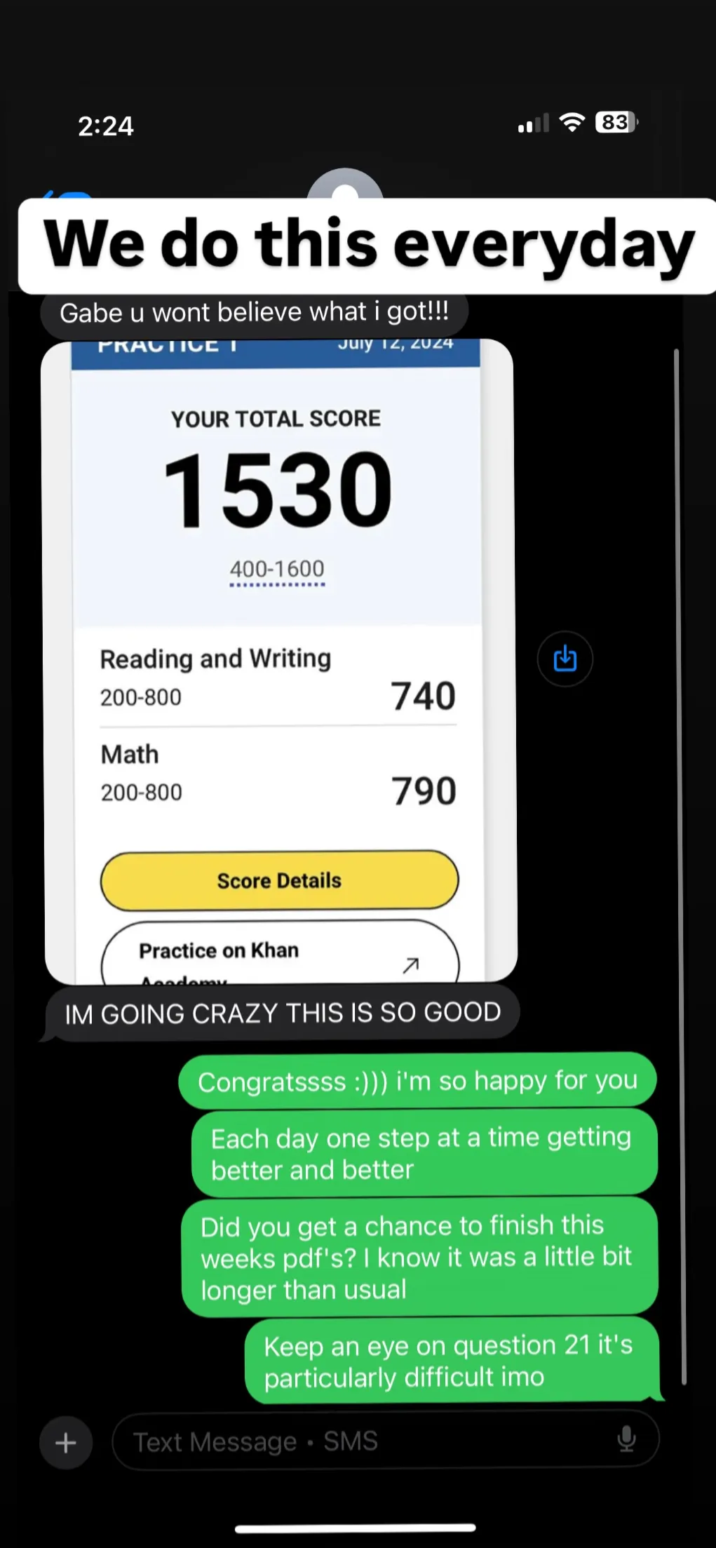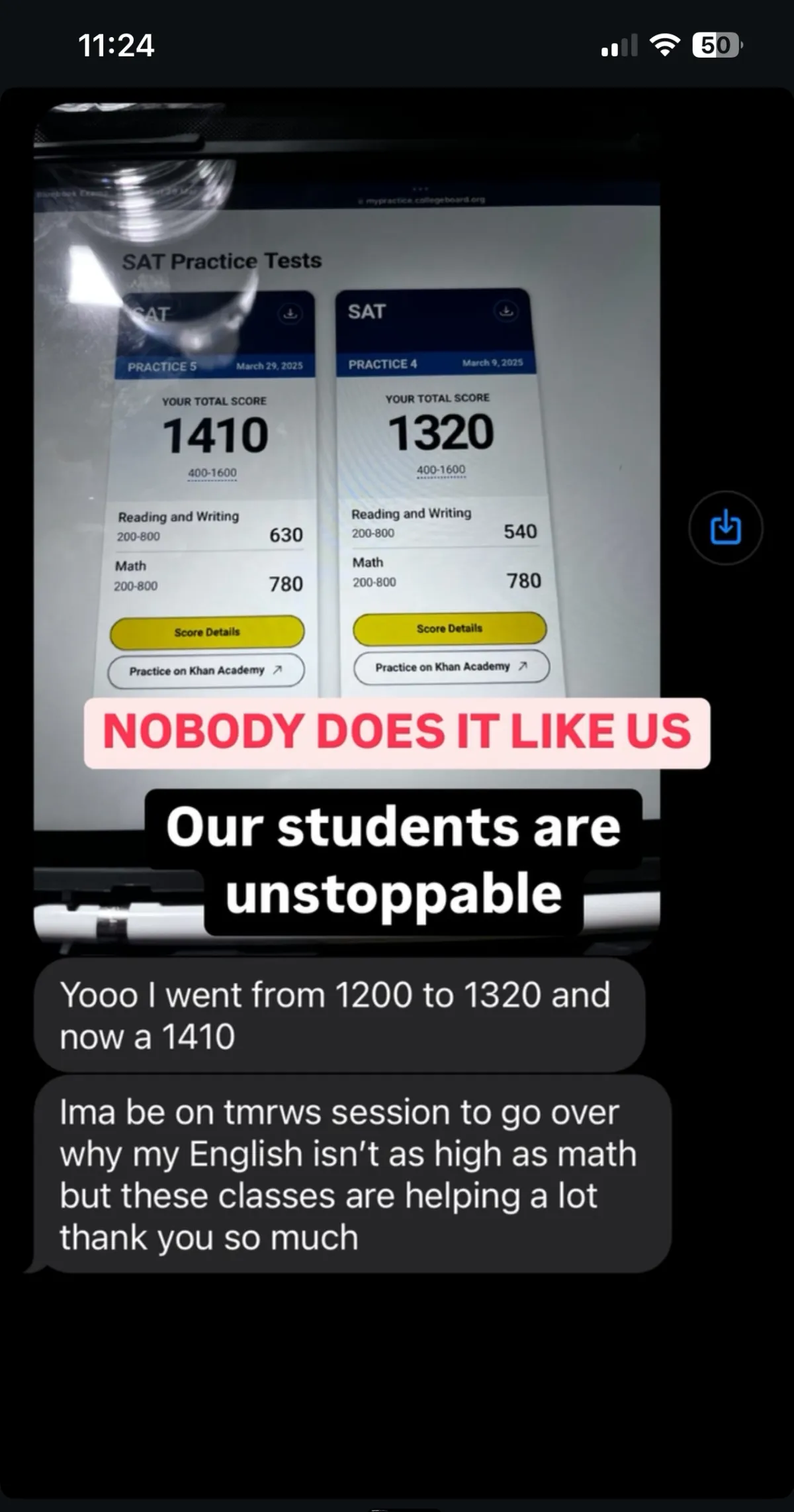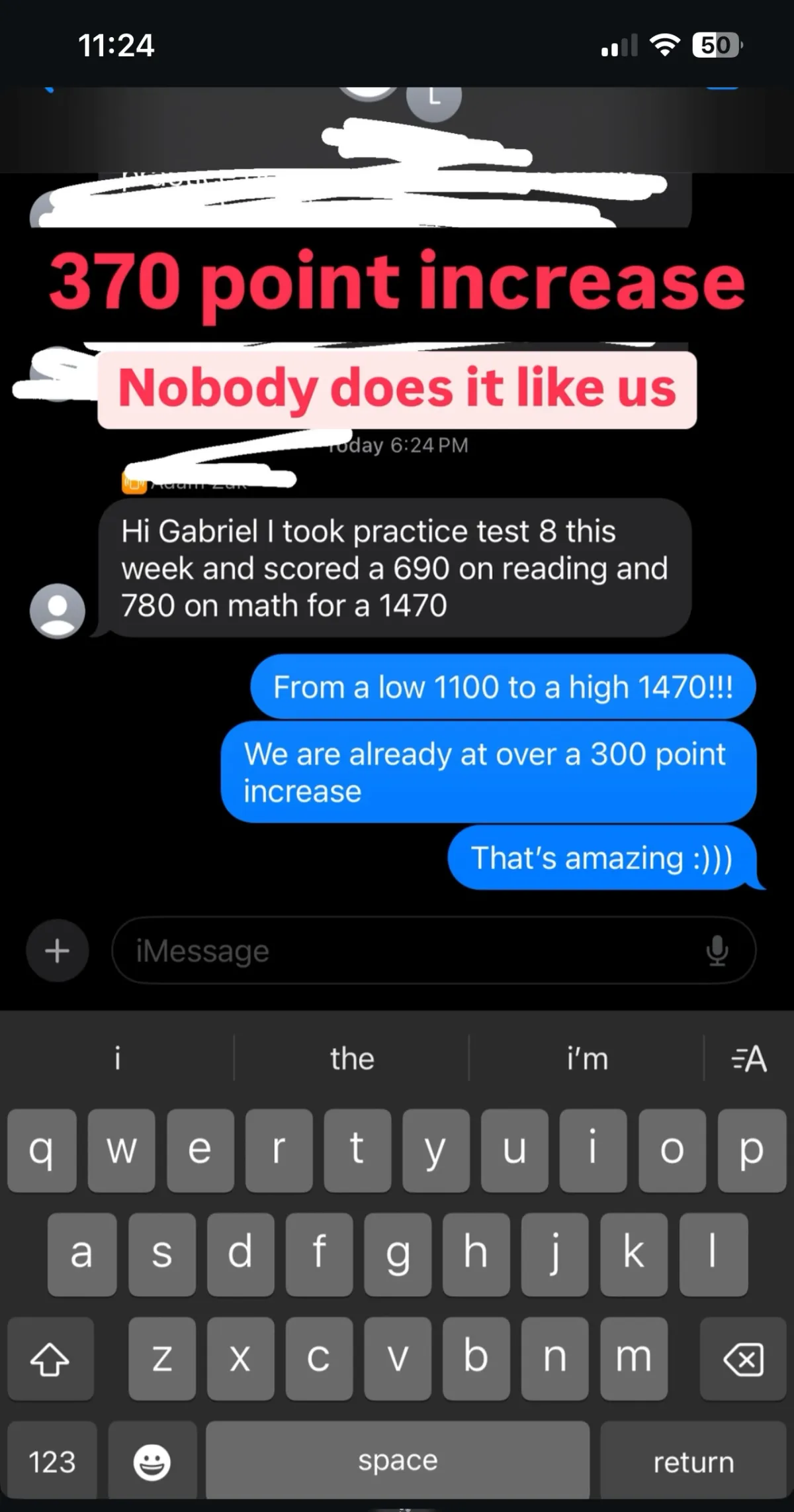 Ayaan began at a 940 and slowly grew to a 1470 over the course of 3.5 months working with a 1 on 1 tutor Gabriel.